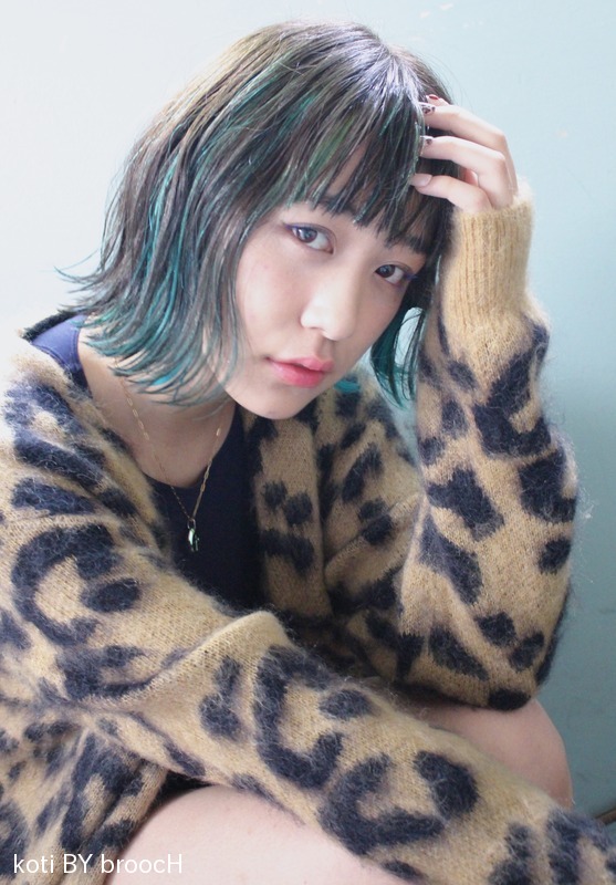 ターコイズブルー&エメラルド ハイライト ボブ
