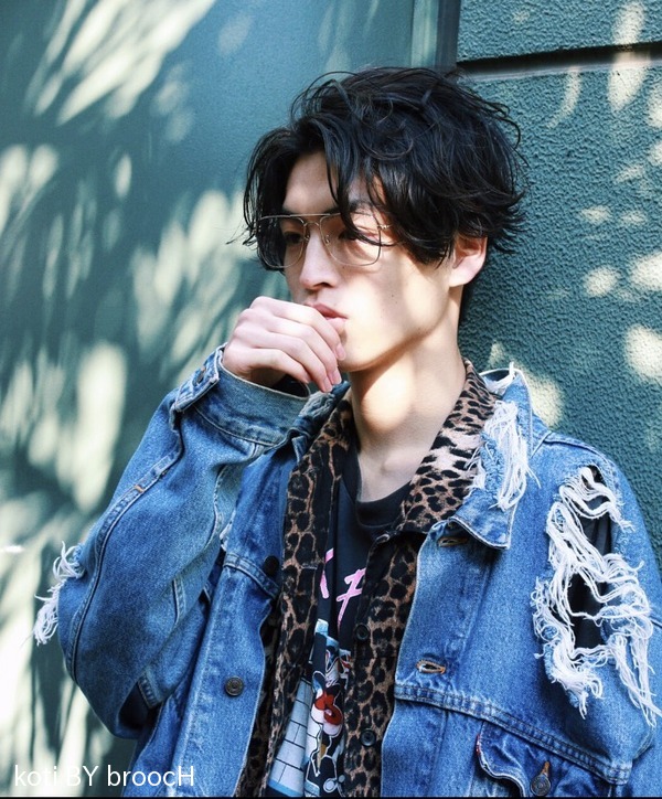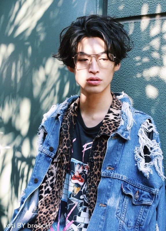 LA Vintage Shop Staff★グランジファッション★メンズニュアンスパーマショートヘア★ネイビーブラックカラー★ラフな束感★かきあげてぐしゃっとスタイリング★ツヤ感のあるスタイリング★男らしい、野暮ったい雰囲気★ストリートファッション★