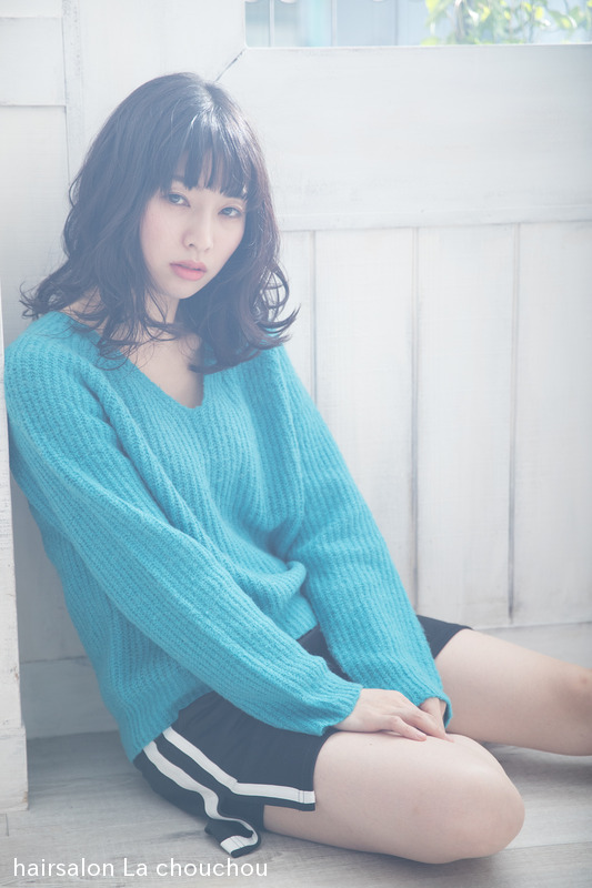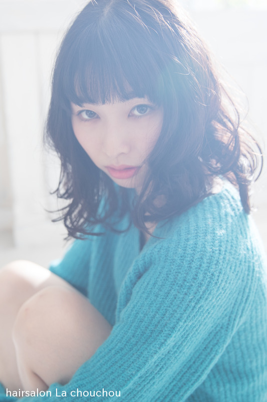 ヘアカラーが暗めなミディアムレングスには適度なレイヤーで毛先に動きを出していくのがオススメ。
