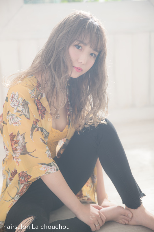 全頭ブリーチのカラー。クーポンのメニューでは出来ません。明るく抜いて、アッシュをのせた透明感バツグンのカラー。
