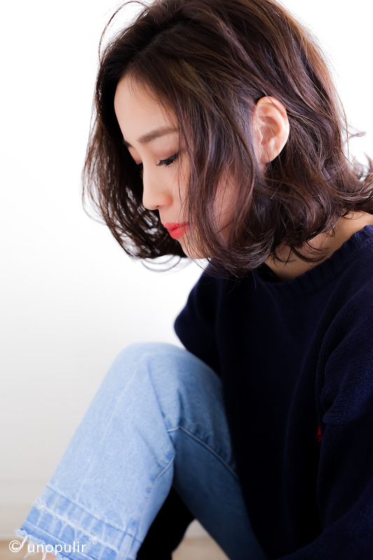 センターパートでランダムに揺れ動くような動きを加えた切りっぱなしのボブです♪カラーはさりげなく動きを出せるようにハイライトも忍ばせているので立体感もプラスできます♪スタイリングが苦手な方はデジタルパーマもオススメ♪